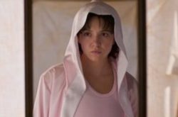 Sone plays Michelle Fuller, the high profile power-dressing, subtly manipulative, coldly calculating CEO of pharmaceutical company Auxolith who’s abducted by bee-keeping conspiracy theorist eco-terrorist Teddy Gatz (Jesse Plemons), who works at the company’s warehouse, and his neurodivergent cousin Don (Aidan Delbis, himself autistic), who believes her to an Andromedan, part of an alien species that’s infiltrated the human race and is killing off the bees in keeping with Colony Collapse Disorder. Holding her captive in their basement, smearing her with antihistamine cream and shaving off her hair so she can’t communicate with the mothership, Teddy’s plan is to use her as a bargaining tool to force the aliens to leave Earth, giving her four days to admit the truth before the lunar eclipse allows her ship to enter the atmosphere undetected.