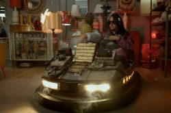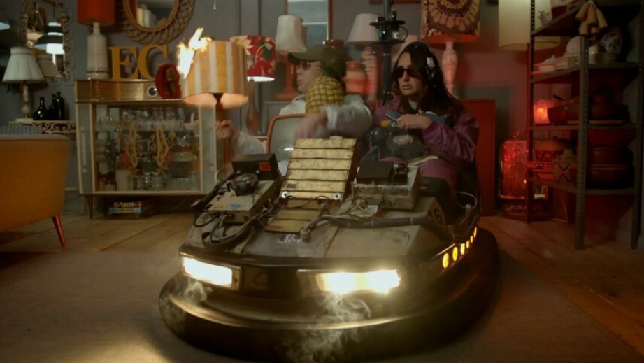 Playing fictionalised versions of themselves with great comic timing, Ruth (Ruth Syratt) and Megan (Megan Stevenson) run the real life bric a brac vintage store Cha Cha Cha in Muswell Hill selling “anything we can get our hands on that’s from the past”. Which, in this delightfully cheap and cheerful very British low-fi sci fi comedy written by sisters Anna-Elizabeth and Hillary Shakespeare and directed by Chris Reading, they acquire using a time traveling dodgem car they found abandoned by the skips outside the shop.