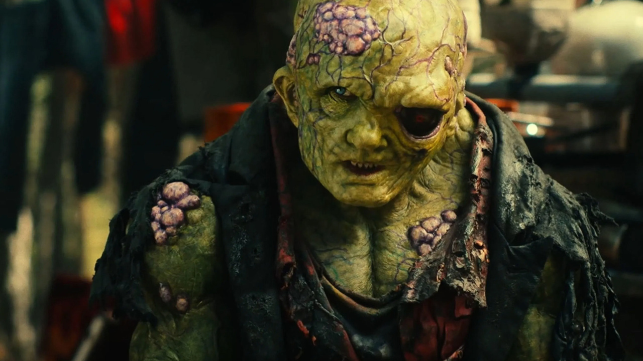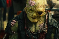 Dumping his body in a vat of chemicals, he emerges (now physically played by Luisa Guerreiro) green and mutated (a look inspired by The Elephant Man), with blue blood and an enlarged eyeball that detaches from his socket, and armed with a glowing toxic chemicals sludge mop, sets out to get revenge. A gleefully excessive sequence in which he takes down The Nasty Boys holding deli customers hostage, has him hailed by the media as a hero, though an attempt to reconnect with Wade doesn’t initially go well.