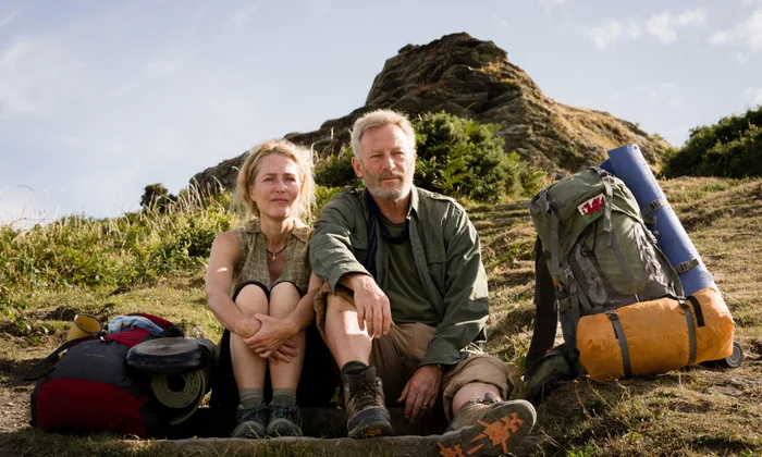 In 2013, empty nesters Raynor Winn and husband Moth were scammed by someone they believed to be a friend and, after a lengthy court battle, ended up penniless and homeless, evicted from the countryside farmhouse where they’d raised their children (Rebecca Ineson, Tucker St. Ivany, despatched to uni) and rented out to holidaymakers. Almost simultaneously, Moth was diagnosed with CBD, a rare degenerative and terminal illness, and given at most two years to live. So, as you do, inspired by Five Hundred Mile Walkies, a book written by Mark Wallington who had done the South West Coast Path with his dog, they decided, she 50 and he 56 with nothing better to do, to set off from Somerset with a tent and a few clothes and living off £40 from tax credits a week, and, over the course of two summers, walk the 630-mile coastal path around southern England, wild camping as they went. The walk gave them both a sense of purpose when all seemed lost, and Raynor’s 2018 memoir of their experiences went on to become a huge bestseller.