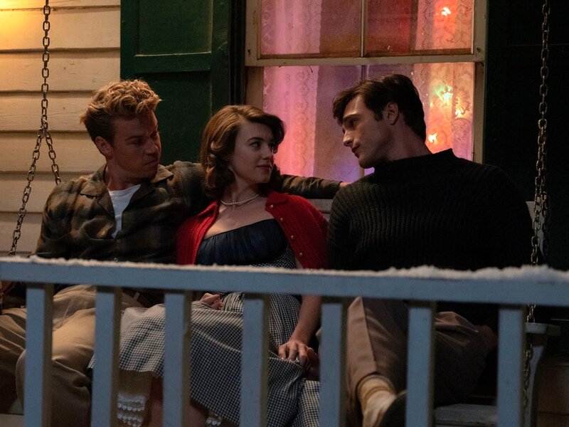 On Christmas Eve in Kansas, following the return of ne’er-do-well but charismatic Julius (a magnetically complex Jacob Elordi going all Montgomery Clift) whose just been discharged from the Navy without any pay, Muriel (a career best Daisy Edgar-Jones) agrees to marry his older war veteran brother Lee (Will Pouter). Given that she seems to have better chemistry with Julius, who teachers her to play poker, it initially looks like its setting up a love triangle. Until it becomes pretty clear that Julius is gay and a hustler for money with it. Lee wants Muriel to sell her mother’s house and for the three of them to build a new life together in San Diego, but Julius has other plans. Fast forward some years and Lee and Muriel have bought a house on a new development in California and Julius is in Vegas where, playing his card shark skills, he’s talked his way into a job spotting card sharpers in a casino. Meanwhile, Muriel’s gambling has progressed to horse racing, where she’s racking up the wins by listening to punters in the café where she works, amassing a tidy stash of cash that she keeps hidden from Lee in envelopes, claiming the money for the purchase came from selling her mother’s house.