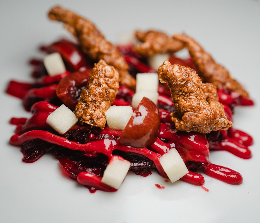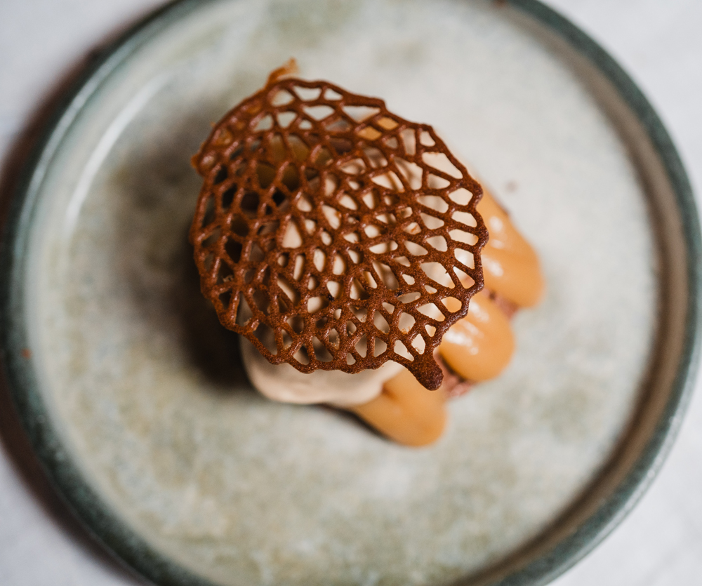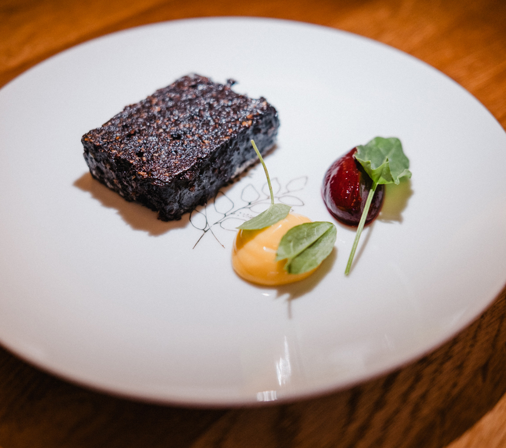 In one dish currently in development, turnip is used threefold – as a raw, bitter crunch in a white crab tartlet; its roasted trimmings steeped into a smoked dashi for poached cod. Elsewhere, whole lamb is broken down and celebrated across the menu: belly braised and served with preserved wild garlic; fat rendered into an indulgent post-dinner fudge; and prime cuts paired with smoked offal sausage.