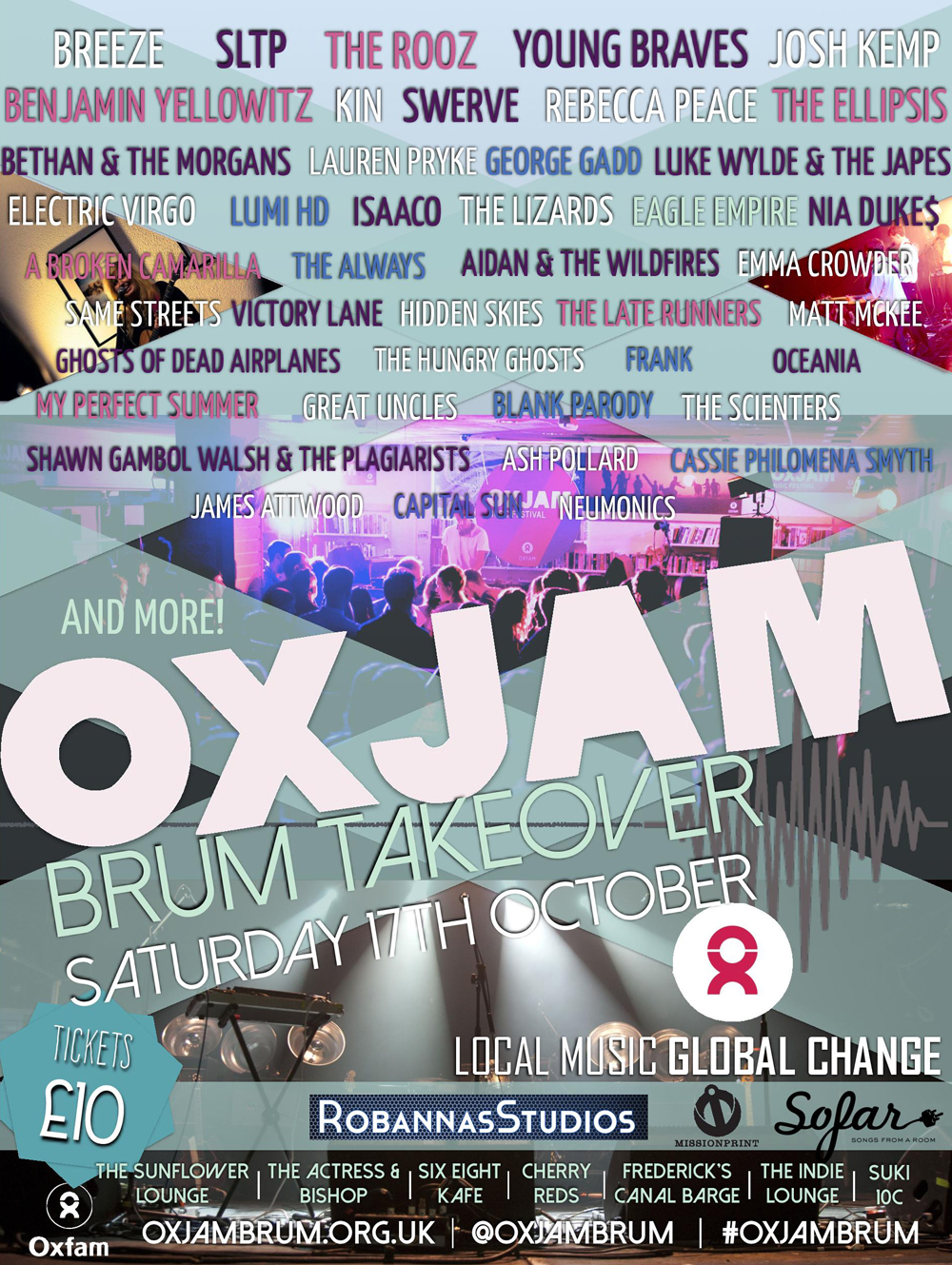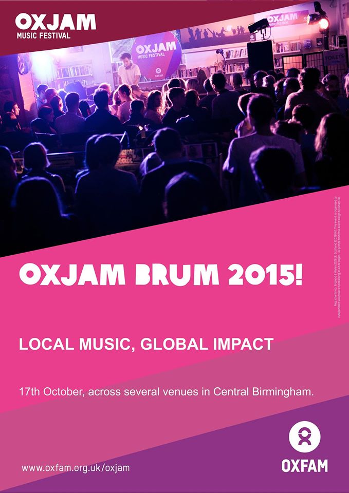 An OxjamBrum spokesperson said, “We’re very proud of Birmingham’s role in helping to make 2015 such a great year for music and culture in the UK. The OxjamBrum Takeover Festival 2015 continues on this theme by celebrating the immense creative talent our city produces – particularly from the independent music community – with a programme of events that is bigger and better than ever before. We can’t wait to share this fantastic day of gigs, performances, sets and sessions with music fans and culture junkies from across the region, whilst raising funds for Oxfam’s vital work around the world.”
