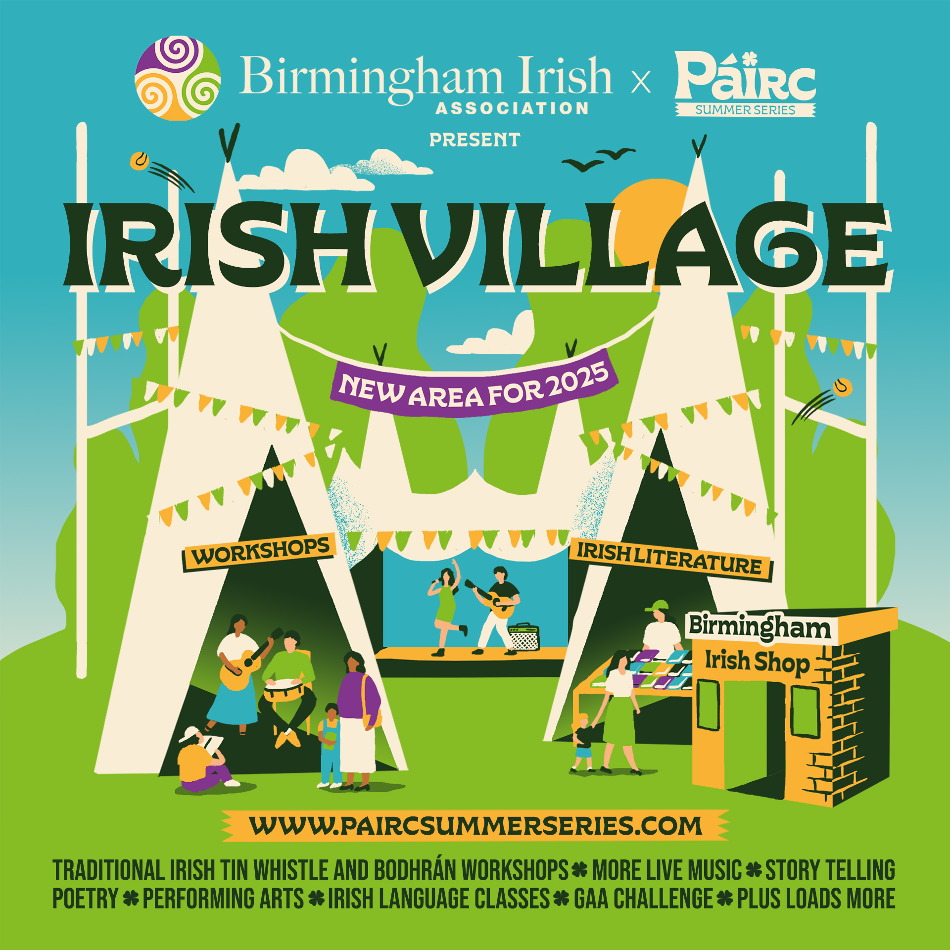 So what does this mean for Pairc Summer Series? It means the inclusion of the all-new Irish Village hosted by our friends at the Birmingham-Irish association. You’ll find this at the festival grounds positioned underneath stretch tents, tipis, and marquees and will include: