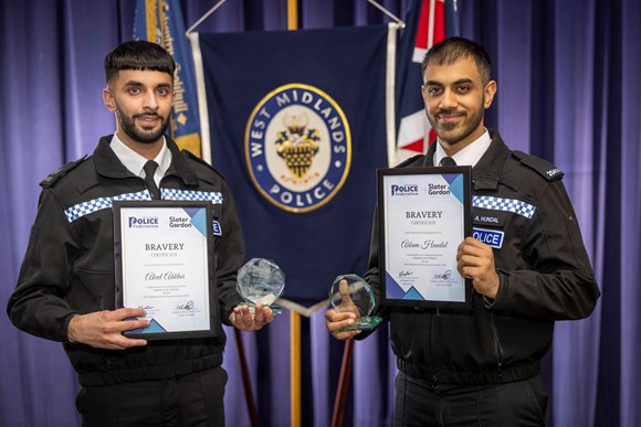 Police Sergeant Akeel Akhtar and Police Constable Aikam Hundal were presented with bravery awards last week for successfully detaining an individual in Birmingham and removing a loaded firearm from his possession. They were presented at the West Midlands Police Federation Bravery Awards.