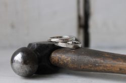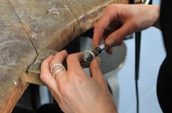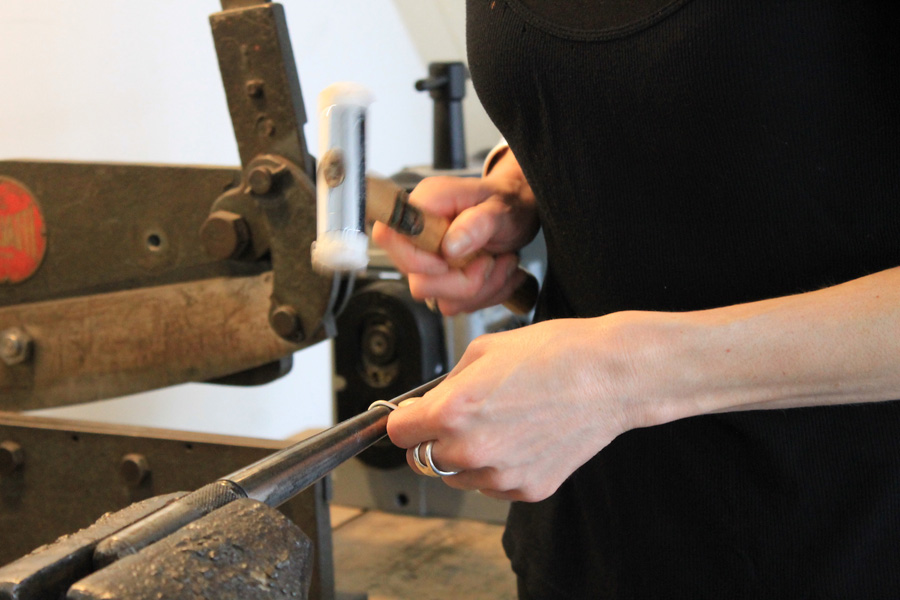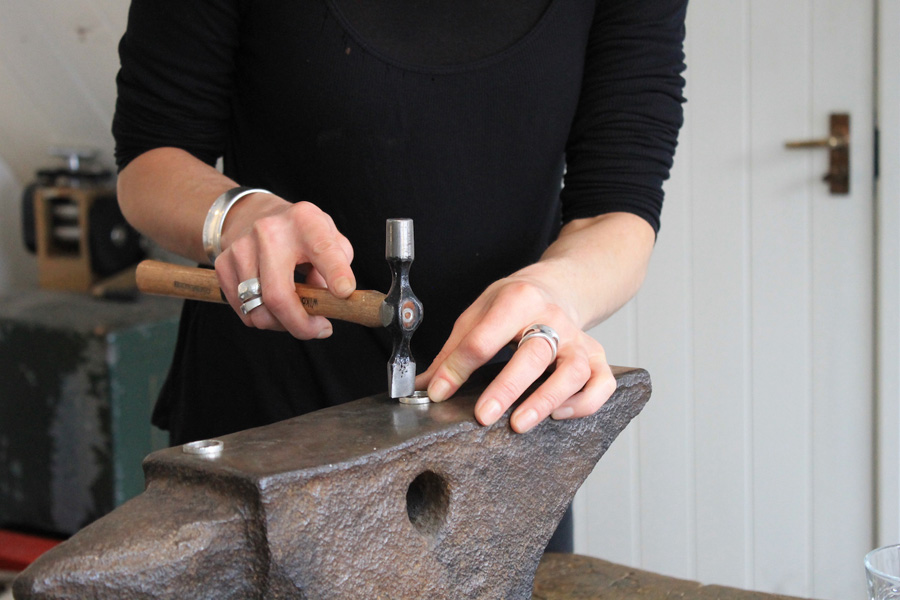 The next stage is to customise our rings to our desired finish. This involves hammering the surface of the rings with different sizes and shapes of hammers to get the effect we want on our finished product.