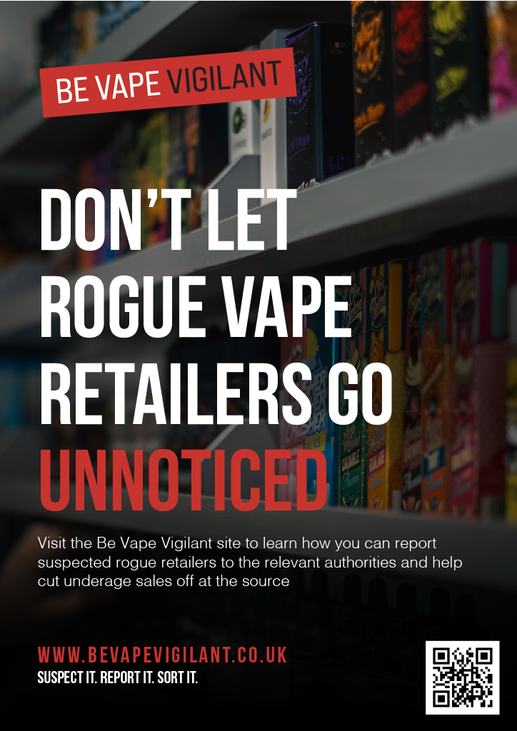 The ‘Be Vape Vigilant [2]’ initiative is the brainchild of the UK Vaping Industry Association (UKVIA) and is supported by Trading Standards, the Association of Convenience Stores and the wider retail sector.