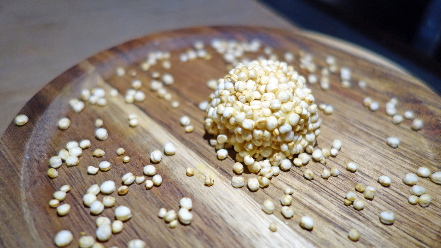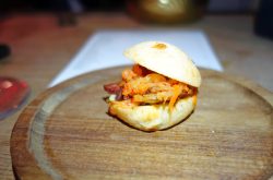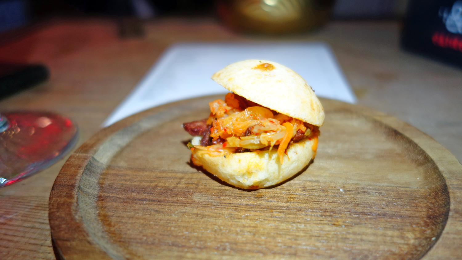 Without too much fuss, and a now busying up Temper & Brown, Leonardo brout out a pre-menu bite, Poa de quejjo, which is a mini cheese bread bap with smoked bacon. This is a popular breakfast in Minas Gerais. It is tiny, and tasty, and creates a bit of wonder of what is to come.