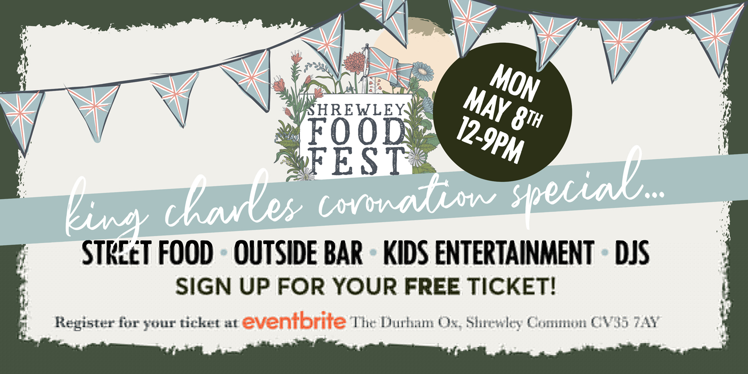 Free tickets are available to book now for Shrewley Food Fest on Monday 8th May via Eventbrite: https://www.eventbrite.co.uk/e/shrewley-food-fest-coronation-special-monday-may-8th-23-free-tickets-538968468197