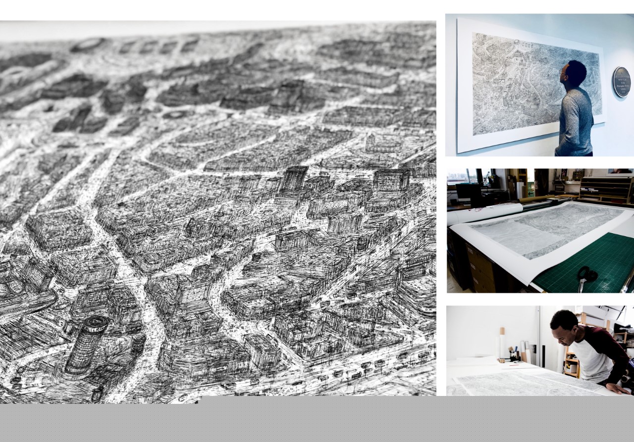 In 2016 sketch artist Carl Lavia and photographer, Lorna Le Bredonchel began their epic 69 cities project, which aims to create a portrait of the whole United Kingdom through large-scale sketches of all 69 cities.