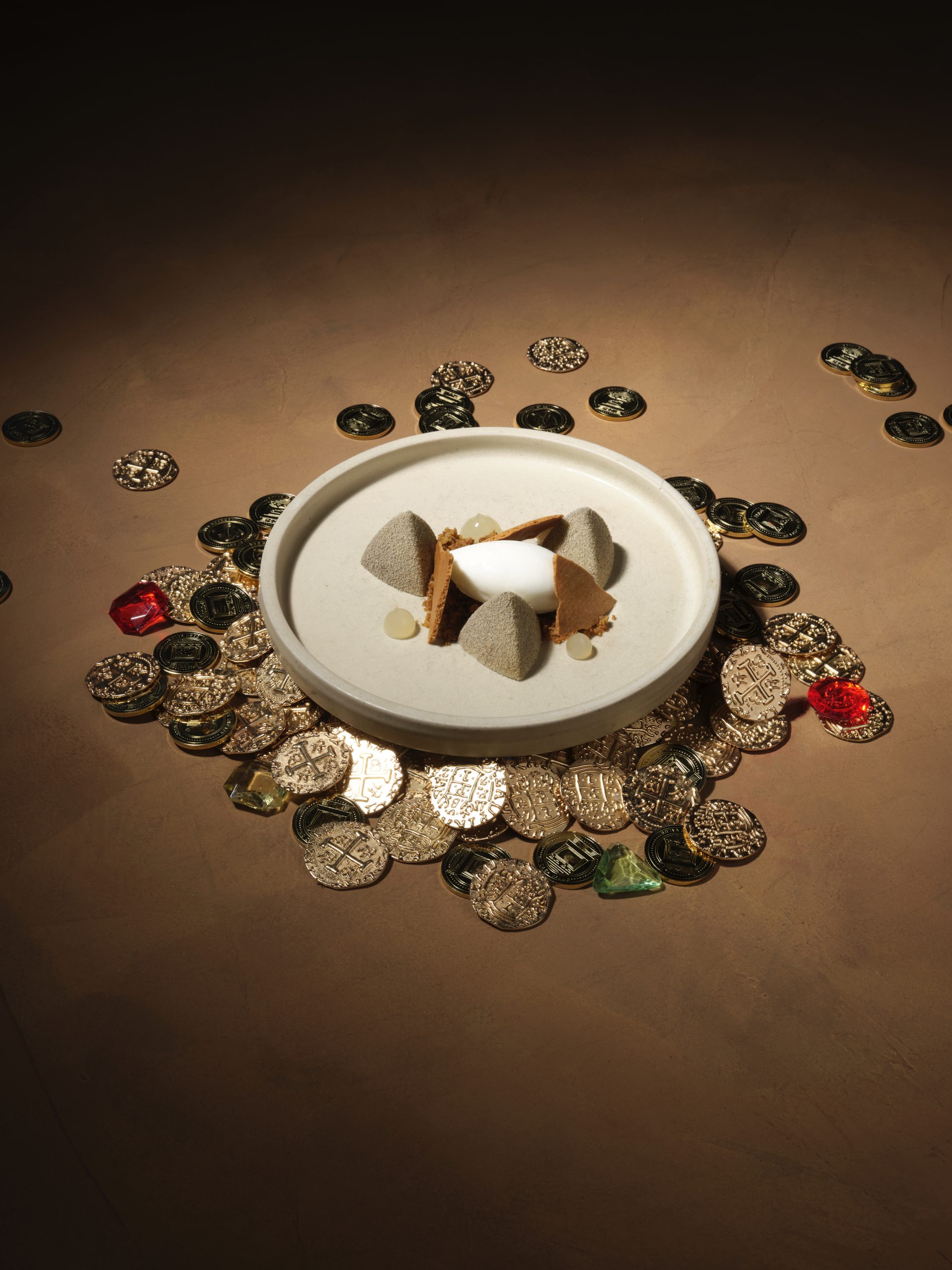 The journey and clues end in the sands of Egypt with The Great Pyramid of Giza, a dessert of bee pollen, honey parfait, sour yoghurt, brown butter, and burnt citrus, offering a sweet and smoky finish to an epic culinary adventure.