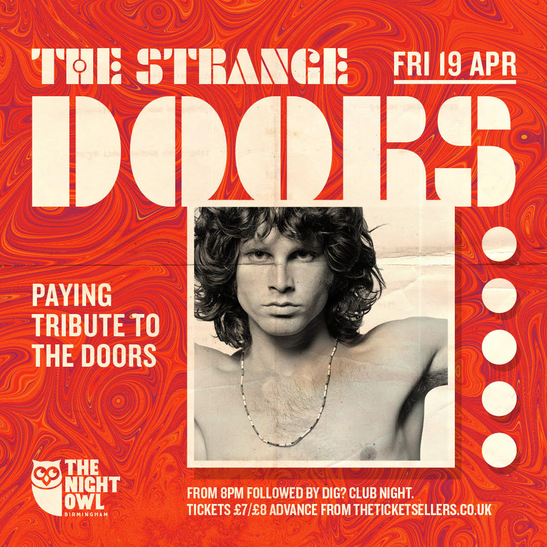 Back by popular demand on Good Friday are The Strange Doors, infamously known as the best tribute to The Doors around. Let them take you back to the 60s by recreating the charismatic sights of Jim Morrison and the authentic sounds of The Doors. Here you will find ad-libbed poetry, a singer that jumps into the air and writhes on the floor (whilst conjuring the Lizard King with his rich baritone voice), jazzy organ solos, bluesy slide guitar and powerful, yet subtle drumming that punctuates the music and vocals. When the gig is done, stay for Dig? and dance all night to soul, rock and roll and more from DJs Richard Bamber and Richard Buckley.