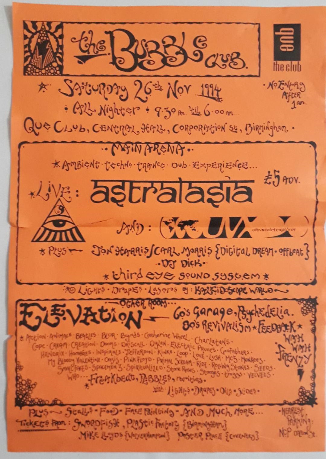 Following the explosion of dance music and rave culture across the UK in the late 1980s and early 1990s, The Que Club became the home for Birmingham and the Midlands’ burgeoning new DJ and MC community with events including Atomic Jam, Flashback, House of God, Drop Beats Not Bombs, Spacehopper and The Bubble Club, amongst others, attracting thousands on a weekly basis.