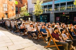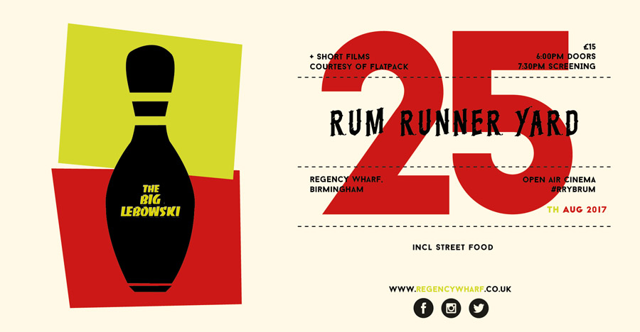 Rum Runner Yard (hidden away in the middle of Regency Wharf) will be hosting a Pop-Up Open Air Cinema for 14 screenings this summer. After a huge success of a sell out screening during Birmingham On Film and Flatpack Film Festival, RRY have decided to get out the deck chairs, headsets and blankets and put up a huge screen for film and food lovers this summer. Theming up films with food.
