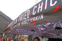 Upon entry to the Custard Factory central courtyard, I was greeted with a large gathering of diners enjoying the delights of Digbeth Dining Club street food vendors Donner Summer (Vegan Donner Kebabs), Only Jerkin’ (Caribbean Inspired Fried Chicken), Jade Rabbit (Asian Street Treats), Urban Cheesecake, Dick’s Smokehouse (American inspired, slow cooked meats and ribs) and Patty Freaks (Dirty Burgers).