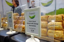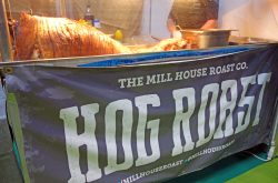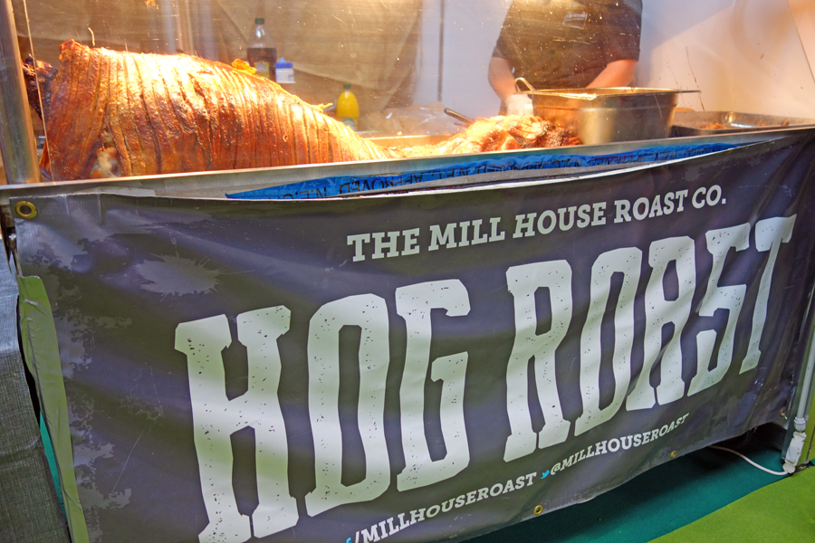 Mill House Roast from Sutton Coldfield were promoting their finest British produce with a locally sourced pig which was spit roasted. The pork baps proved extremely popular as was the crackling. The Knife Sharpener Guy stood nearby, demonstrating razor sharp knives – plenty of chopping going on beneath his finest bowler hat!