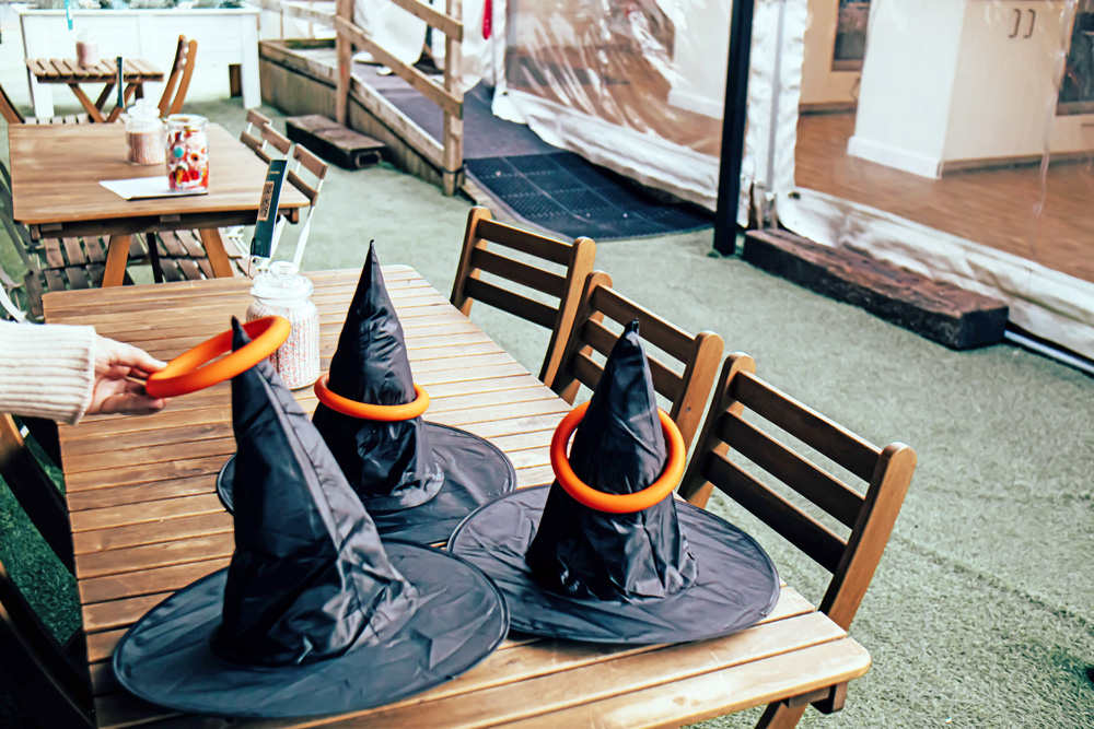 Before we stared ruining our kitchen stations, food and drink was kindly available for everyone to enjoy. Along with games like, witch hat ring toss and guess the amount of sweets in the jar.