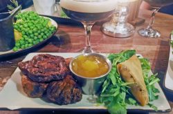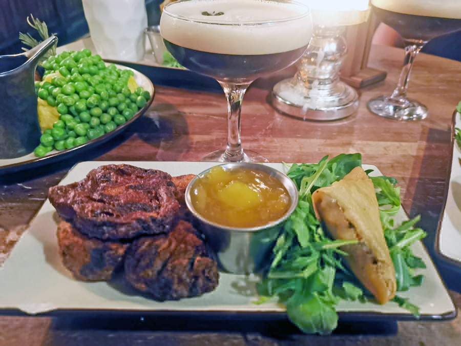 As for the food, the menu is a nice take on traditional pub servings but with Indian street food options thrown in creating a really tempting offering. You can fill your boots and get a ‘Barons signature Peaky Pie’ with a flat cap pastry lid or choose from a selection of British and Asian ‘small plates and tins’, Indian inspired street food ‘Hati Rolls’, sandwiches, burgers..it’s all there and definitely something for everyone whatever your appetite or taste.