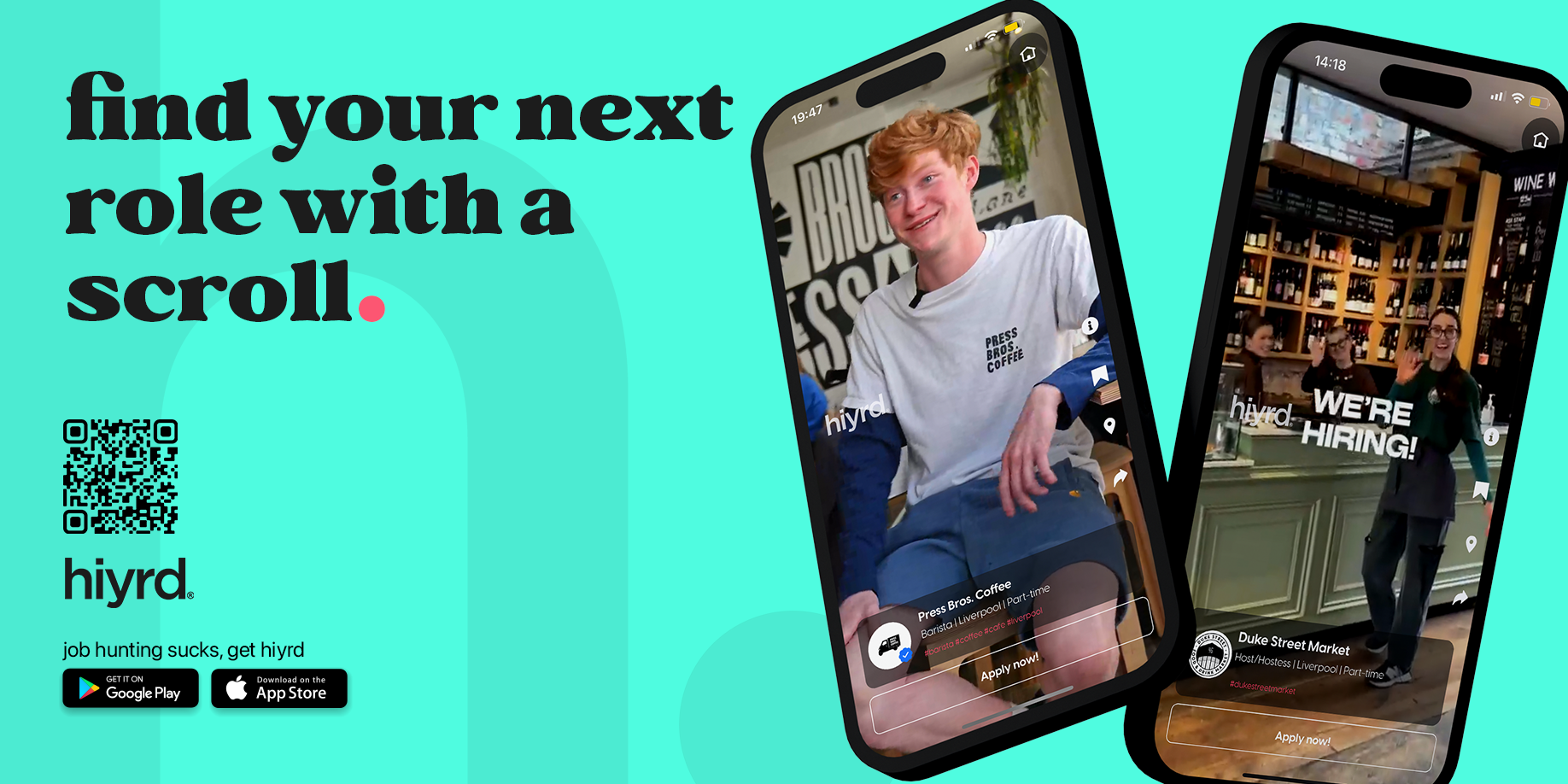 The concept is simple; job seekers scroll through a video feed of vacancies in the local area, and when they find one they like, they record themselves answering 3 questions that the employer sets (this can be anything). Think of it like TikTok for jobs – no more CVs, no more cover letters, no more boring jobs board! Hiyrd removes the stress of job hunting, replacing paper with personality and is completely