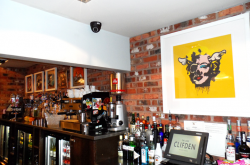 Upon entry the pub is a modern take on a traditional Victorian boozer, with an urban art adornment, showcasing various artists, most notably Banksy and Obey. It’s a cool urban vibe alright, but it still has enough to keep the traditionalist CAMRA flat cap beard scratchers swinging their jugs after a few real (or is it craft these days?) ales.