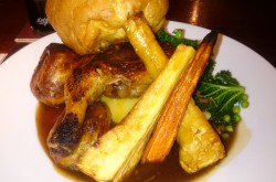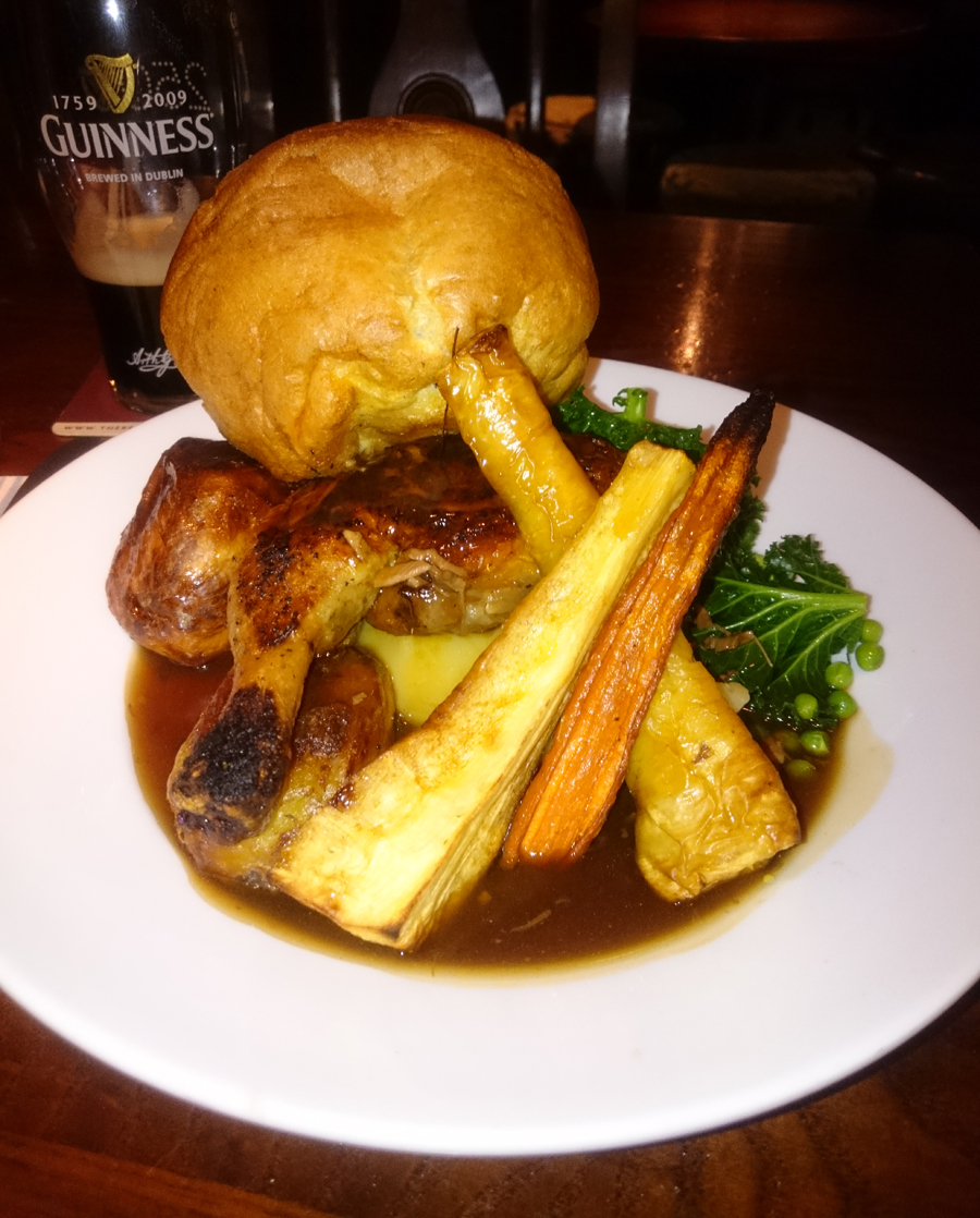 I’ve already mentioned the Yorkshire Pudding, but oh man, it was enormous. The chef could have worn it as a hat.. it could have fed Yorkshire for a week. Well actually, it was soon cut up into squares and was used to mop up the final traces of gravy and peas and polished off with a good swig of Guinness.