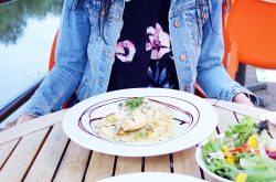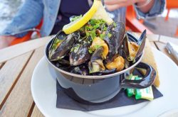 We chose to dine at the water’s edge in order to best appreciate the stunning views over the River Severn on this fine summer’s eve, and our table was perfectly positioned to sit back and watch the world go by. I selected a South African Sauvignon Blanc to accompany my starter of fresh mussels with white wine, garlic and cream, served with a freshly baked baguette.