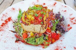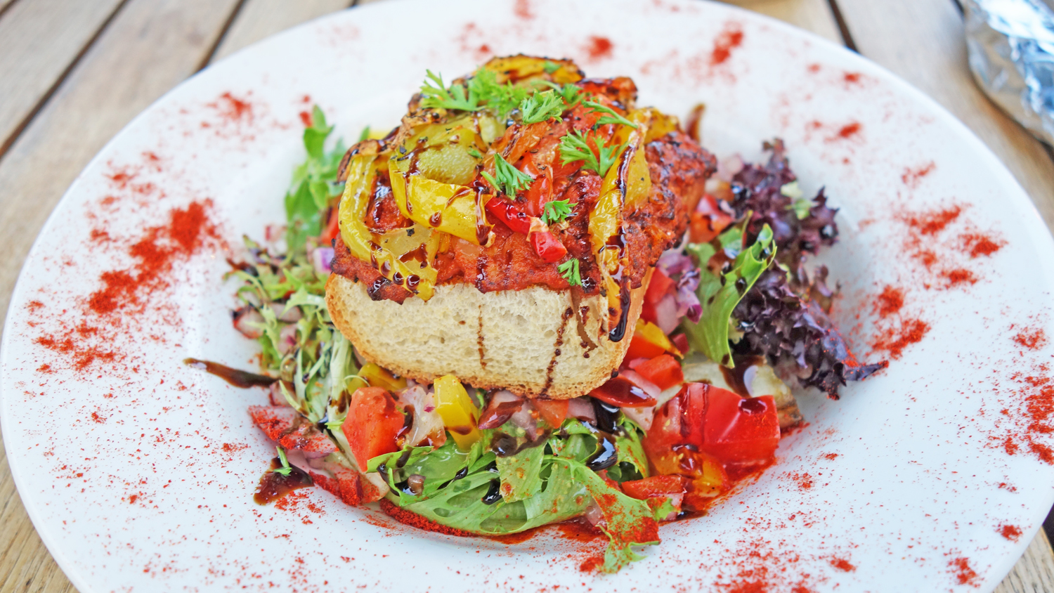 Although I thought that very little could distract me from the excellent company and the beautiful view, I was mistaken; these mussels were delicious beyond all expectation, and all conversation ceased from the very first mouthful. Only days before I had the pleasure of dining on fresh mussels at a beach-side restaurant in Cornwall, and of course, they were good, but these were better: succulent, perfectly cooked, bathed in a creamy sauce so delicious and well-balanced in flavour and consistency that I was tempted to drink the leftovers like soup. My companion offered me a bite of his paprika spiced sardines, chickpeas and roasted pepper en-croute, and it was a sensory delight; the paprika was an innovative taste that balanced well with the sardines.