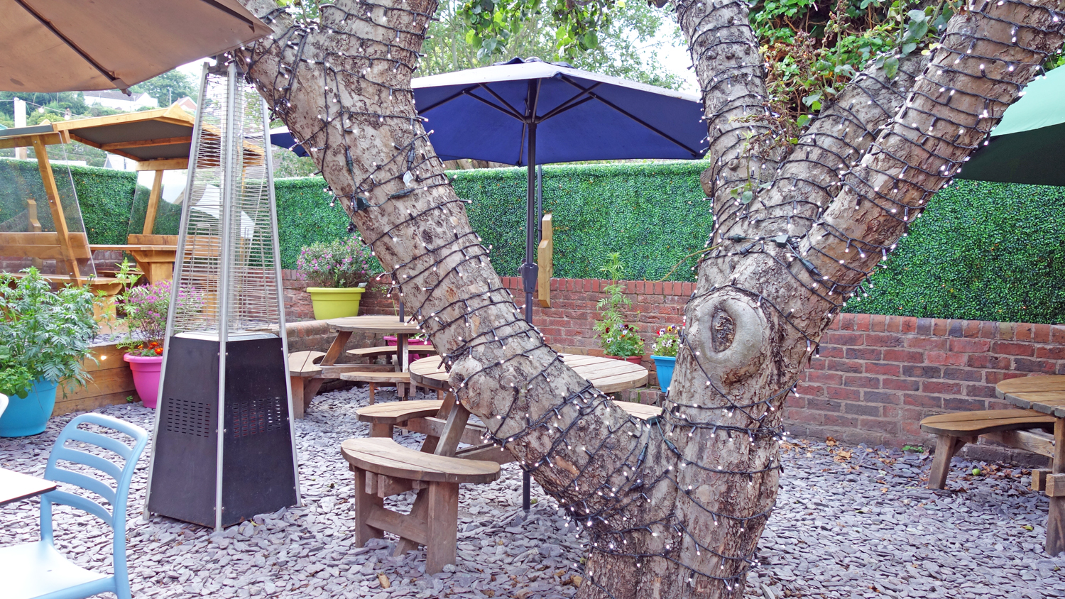 Imagine my surprise then, as I passed along a corridor into a garden that was like stepping into an entirely different continent, somewhere distinctly Mediterranean in style. An expansive wooden deck invited us onwards, covered by grape vines and everywhere, colourful flowers, and string lanterns casting a warm glow across the entire terrace. Ahead I could see the wood-fired pizza oven and even further, beyond a carp pond and past an outdoor bar, there was an open air grotto dominated by an ancient magnolia tree festooned in fairy lights.