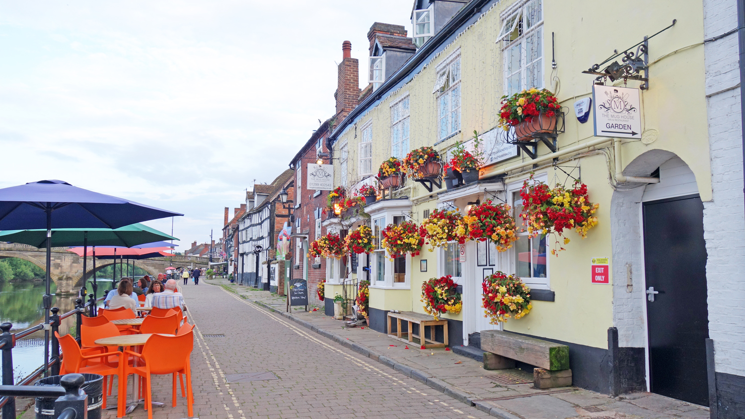 This evening we took a stroll through Bewdley, Worcestershire’s most picturesque small town, past Georgian terraced houses and along the verdant banks of the River Severn, until we saw the sunny exterior of The Mug House Inn & Restaurant, made resplendent with hanging baskets of the brightest summer blooms.