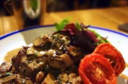 My starter of Moules Mariniere boasted perfectly-cooked and generously-proportioned mussels bathed in a sea of the most delicious white wine sauce I have ever had the pleasure to taste. Creamy, rich, moorish; this sauce was a seriously good companion to some seriously succulent mussels and it would have been a crime not to soak it all up with the accompanying sea-salted focaccia, which was all the things an excellent focaccia should be: gently seasoned and slightly crispy on the outside with a moist chewy labyrinth of air holes within. I was impressed. In fact, I’m still dreaming of that starter now.