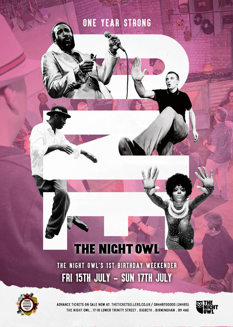 The Night Owl opened in Digbeth to a sold out Northern Soul all-nighter on Friday July 17th 2015. In the months that follow this intimate bespoke club has played host to many a sold out party, hosting acts such as Angelo Starr & The Team, Tim Burgess (The Charlatans) and Steve Craddock (Ocean Colour Scene) to name a few. They’ve even been building relationships across the pond with Nicholas Mancuso of the Motown Museum in Detroit saying he is ‘very excited about The Night Owl and their Motown night The Soul Hole, everyone here at the Motown Museum wish them well on their 1st birthday’.