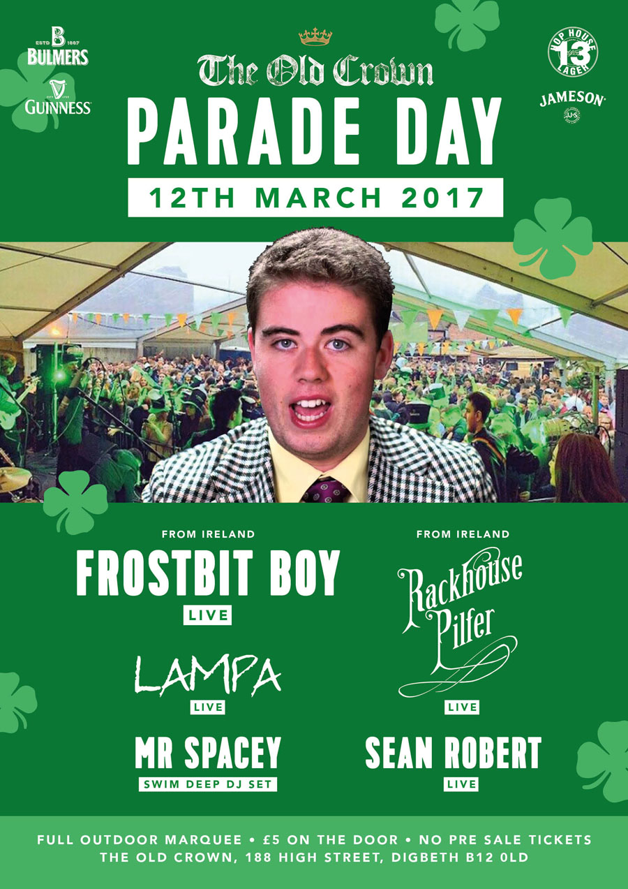#StPatricksWeek kicks off on the 12th March with the pub’s official parade day party with viral superstar Frost Bit Boy and Rackhouse Pilfer flying in from Ireland for the event. Local talent will be performing too with Lampa, Mr Spacey (Swim Deep DJ Set), Sean Roberts and a DJ set from popular club night Moschino Hoe Versace Hottie.