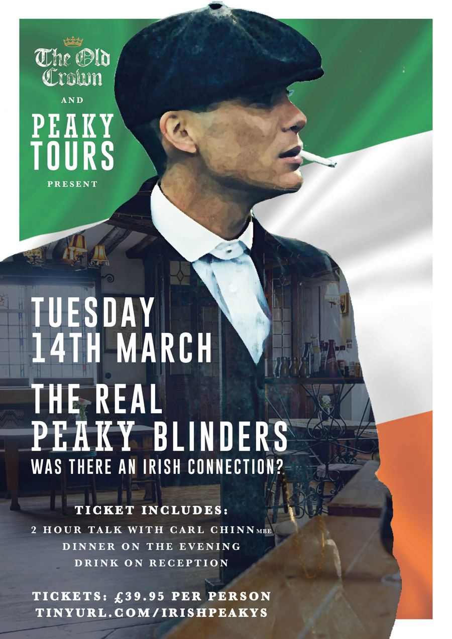 Peaky Tours host a one-off event on the 14th exploring the Irish connection to the Real Peaky Blinders hosted by historian Prof. Carl Chinn MBE.
