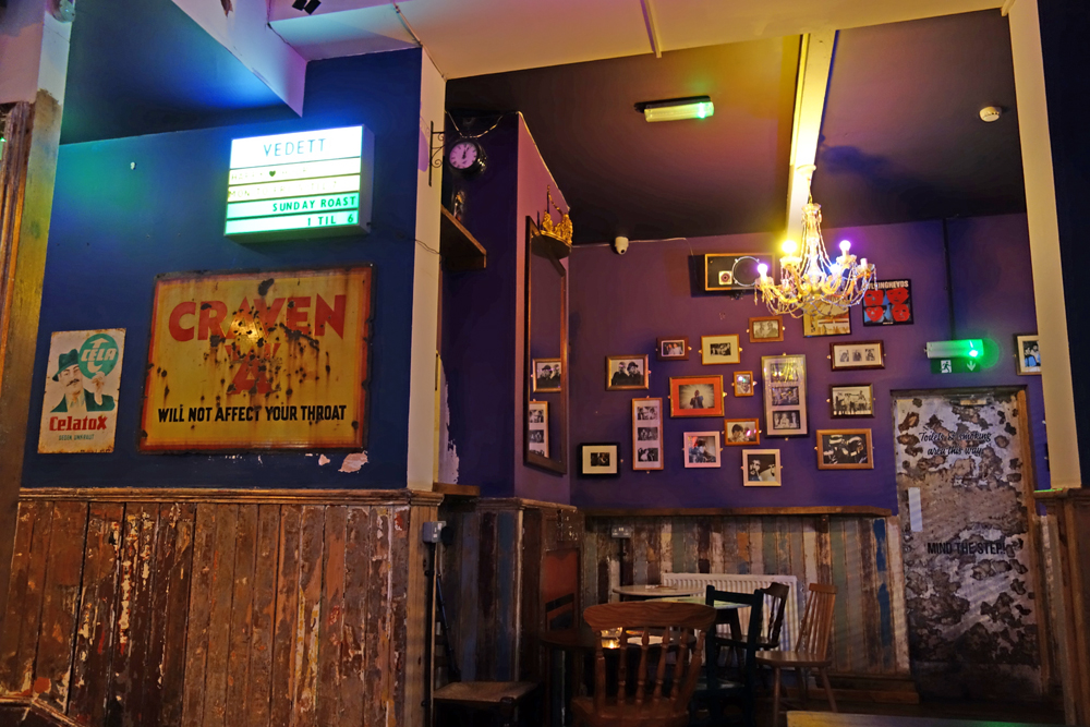 Inside you will find a beautiful old sanded-down bar, a distressed wood interior with warm bright colours, and an assortment of working vintage electronics and cool framed musicians on the walls – not to mention the junk shop chandelier. The Ruin was officially the first pub I can think of to provide a fair selection of tatty old board games – something others have since made a dedicated bar concept out of.