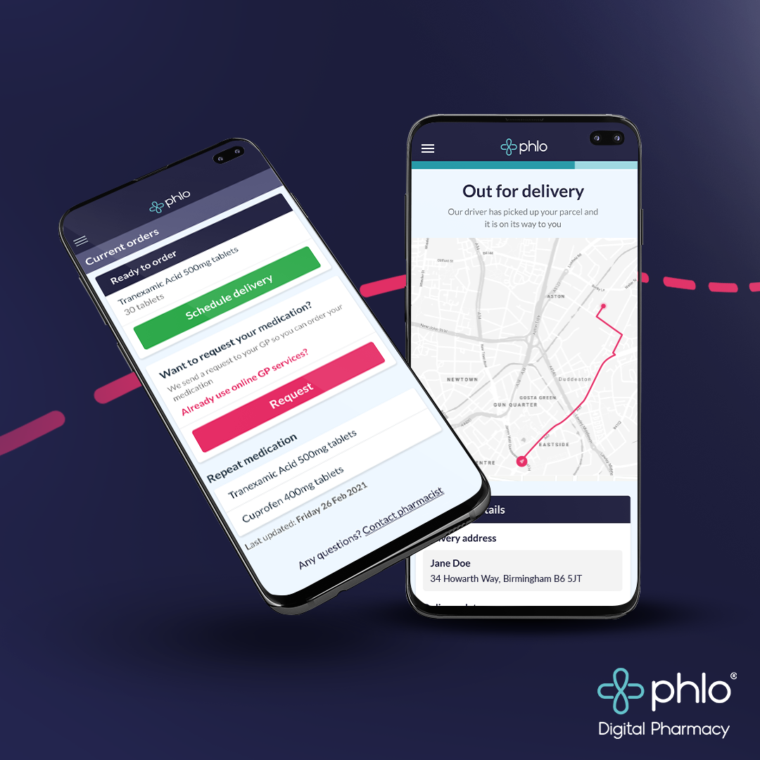 are sent directly from their GP to Phlo via the Electronic Prescription Service. Phlo’s pharmacy then safely and securely dispenses and delivers their prescriptions for free in under 4 hours in their same-day delivery zone. The pharmacy process is fully trackable on a live map, from placing an order to a patient’s chosen delivery location, meaning commuters or those living rurally can order prescriptions to, for example, their office, for ease.